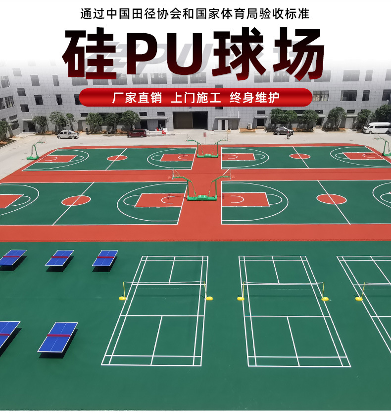 深圳厂区硅PU篮球场的价格因多种因素而异,包括硅PU面层的厚度、品牌、施工质量以及可能的附加设施等。以下是根据参考文章中的信息,对深圳厂区硅PU篮球场价格的详细解析:
